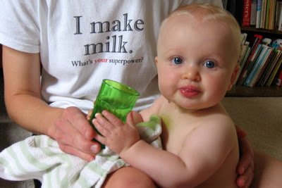 Not only has N begun to babble, eagerly (even though her face conveys distaste) eat rice cereal from a spoon, roll as a means of transport, and sit without parental support, she has also taken to drinking from a cup: