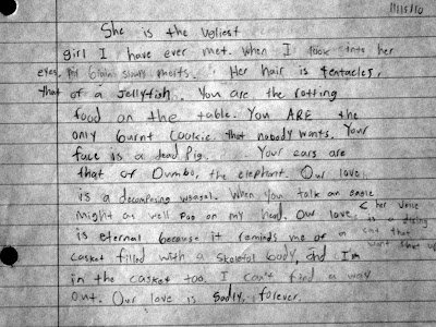 wow. your kids really got the gist! especially the second one. maybe you could get Billy Collins to come to your classroom sometime and the wit and satire could fly! he's one of my fav poets.