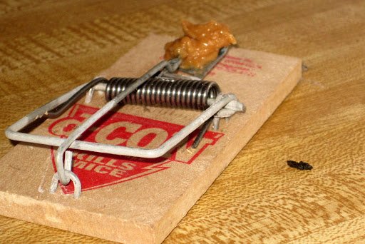 At home, though, my technique is less exciting. In general accordance with expert marketers’ directions, I securely lace old-fashioned wooden traps with small bits of cheese, then place them at key locations where I’ve seen traffic signs in our attic and basement.