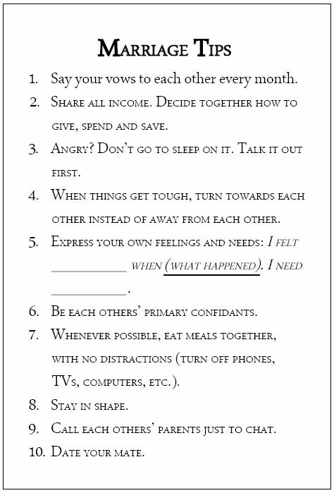 Since I like to give advice, I wrote down and framed some for a young couple whose wedding we attended a few weeks back: